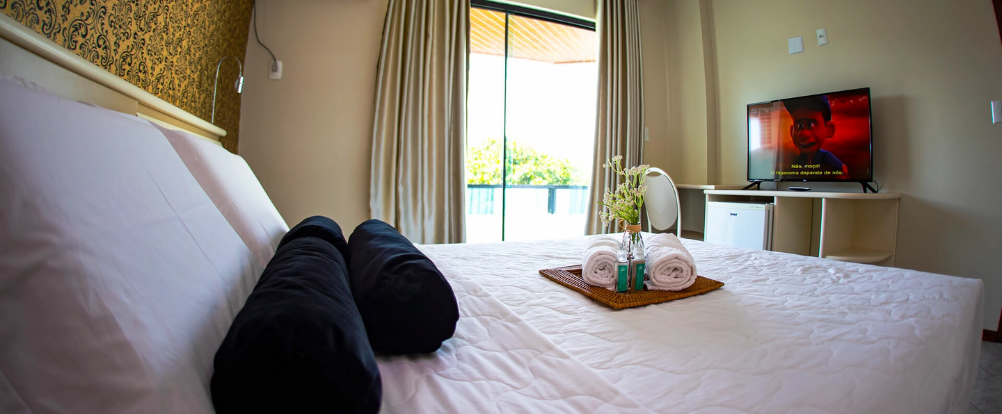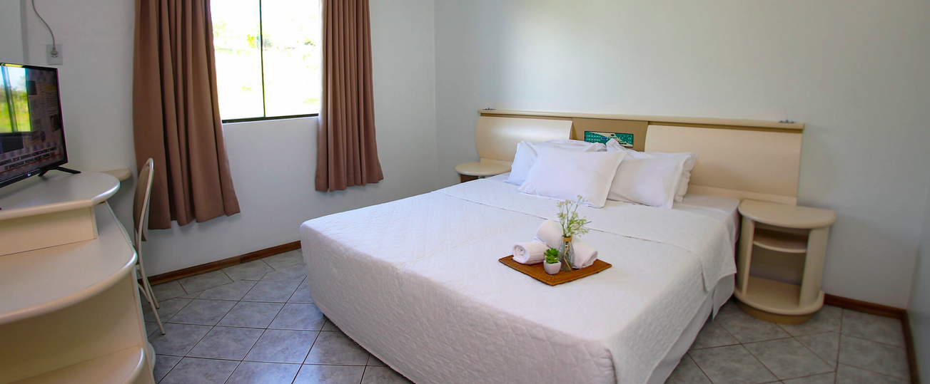 Toda la estructura para ti que buscas comodidad y tranquilidad. Todos nuestros 72 apartamentos cuentan con baño privado, televisores de pantalla plana, wifi gratuito y aire acondicionado. Todo esto para que tengas la mejor experiencia en tu estadía en Pratas Thermas. Además, si es necesario, puede solicitar ajustes en las habitaciones, para adaptarlo a sus necesidades.